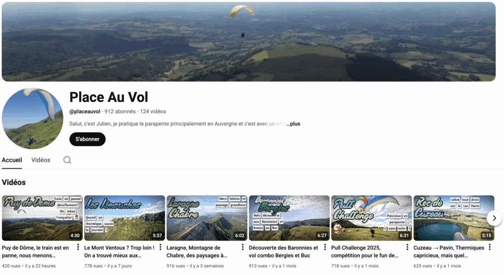 Sur sa chaîne YouTube, Julien vous emmène voler avec le club. C’est aussi une belle façon de découvrir les sites.
